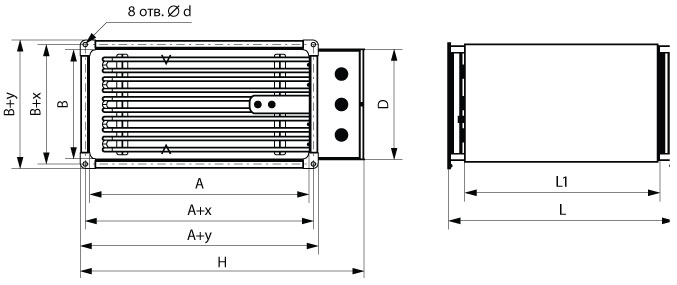 Канальный электрический нагреватель (прямоугольного сечения)